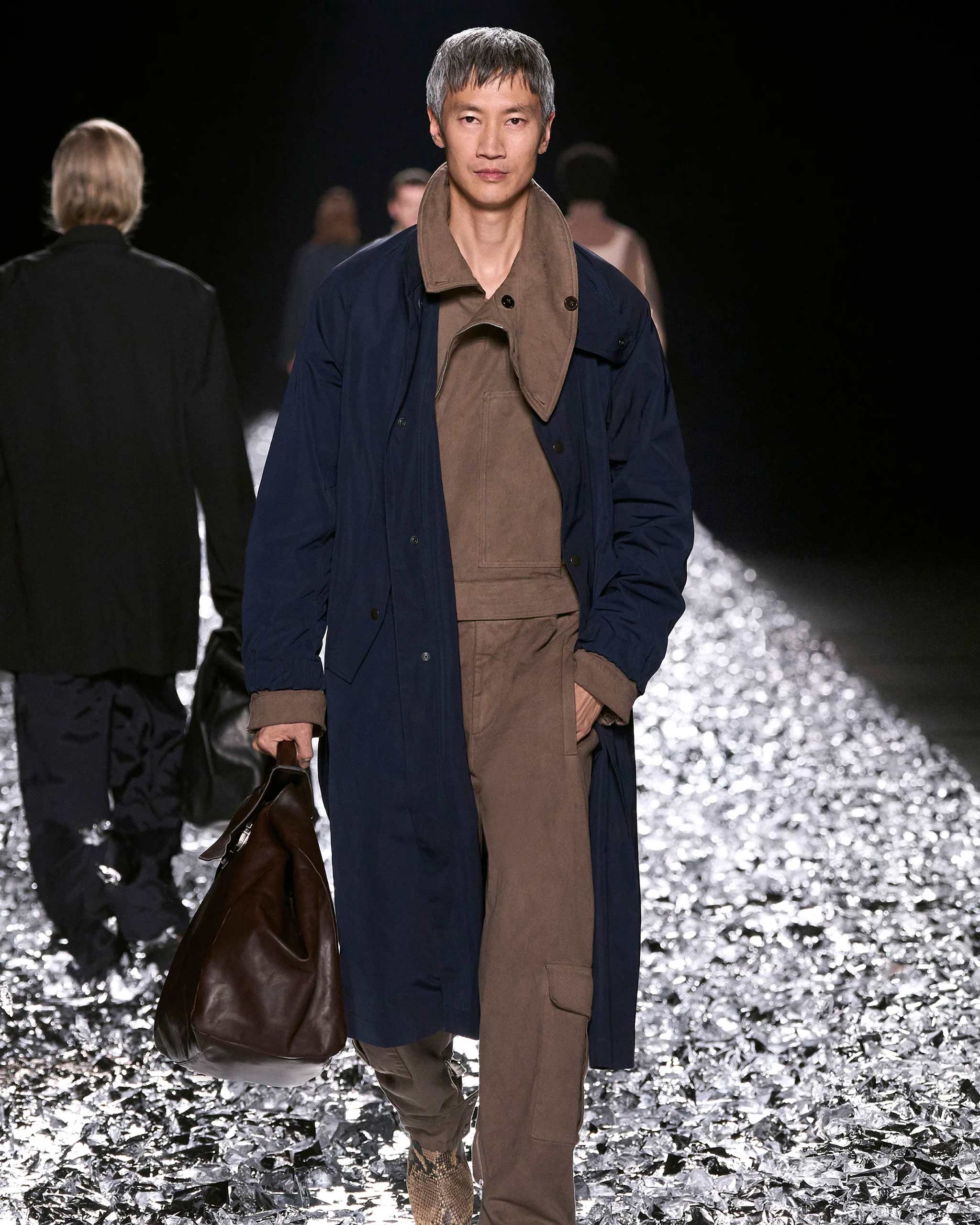 You can never go wrong with a monochromatic look. A full Mocha Mousse ensemble—such as a suit in this rich shade, paired with variations of the color for your inner layers and accessories—will immerse you in this rising trend. If you want your look to feel more dynamic, consider adding a pop of color to make it more interesting.