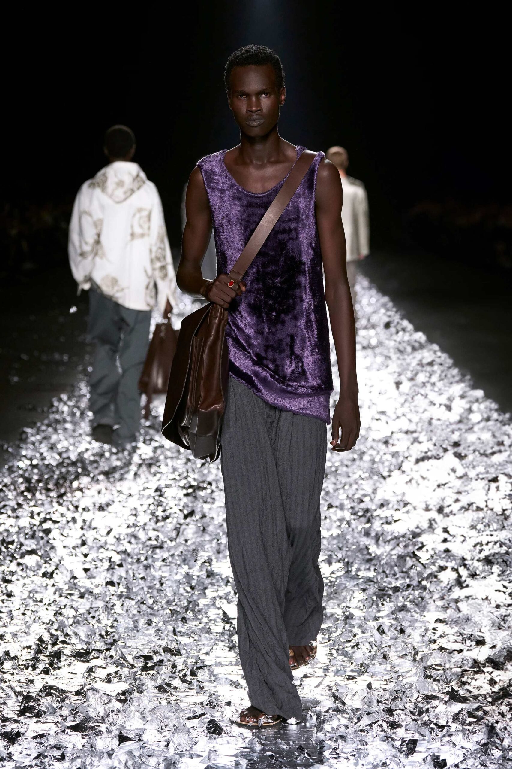 Leather goods in Mocha Mousse are easy to find, as this is one of leather’s primary shades. Start with shoes in this color, paired with a matching belt. If your pants don’t have belt loops or if you prefer a more casual look, consider a bag instead to complement your shoes.