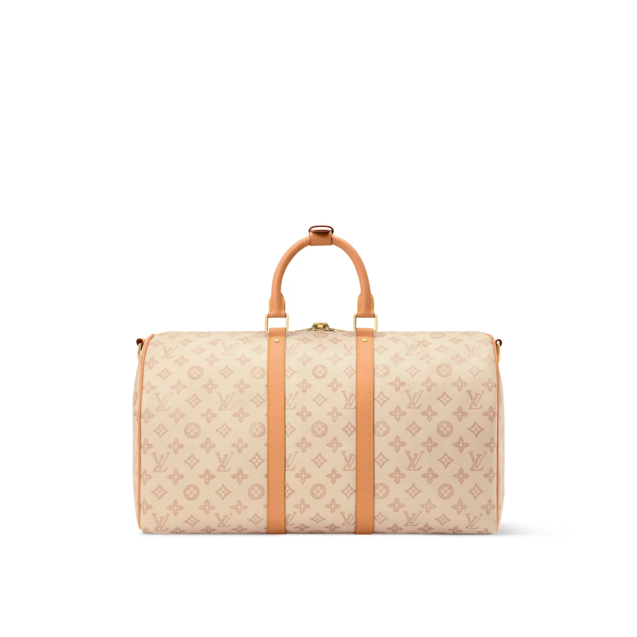 Its construction reflected this new philosophy. The cylindrical silhouette, rolled leather handles, and double zip closure balanced ease with durability. Made from Monogram canvas and reinforced with leather bands, the Keepall was designed to withstand repeated use while maintaining its visual polish.