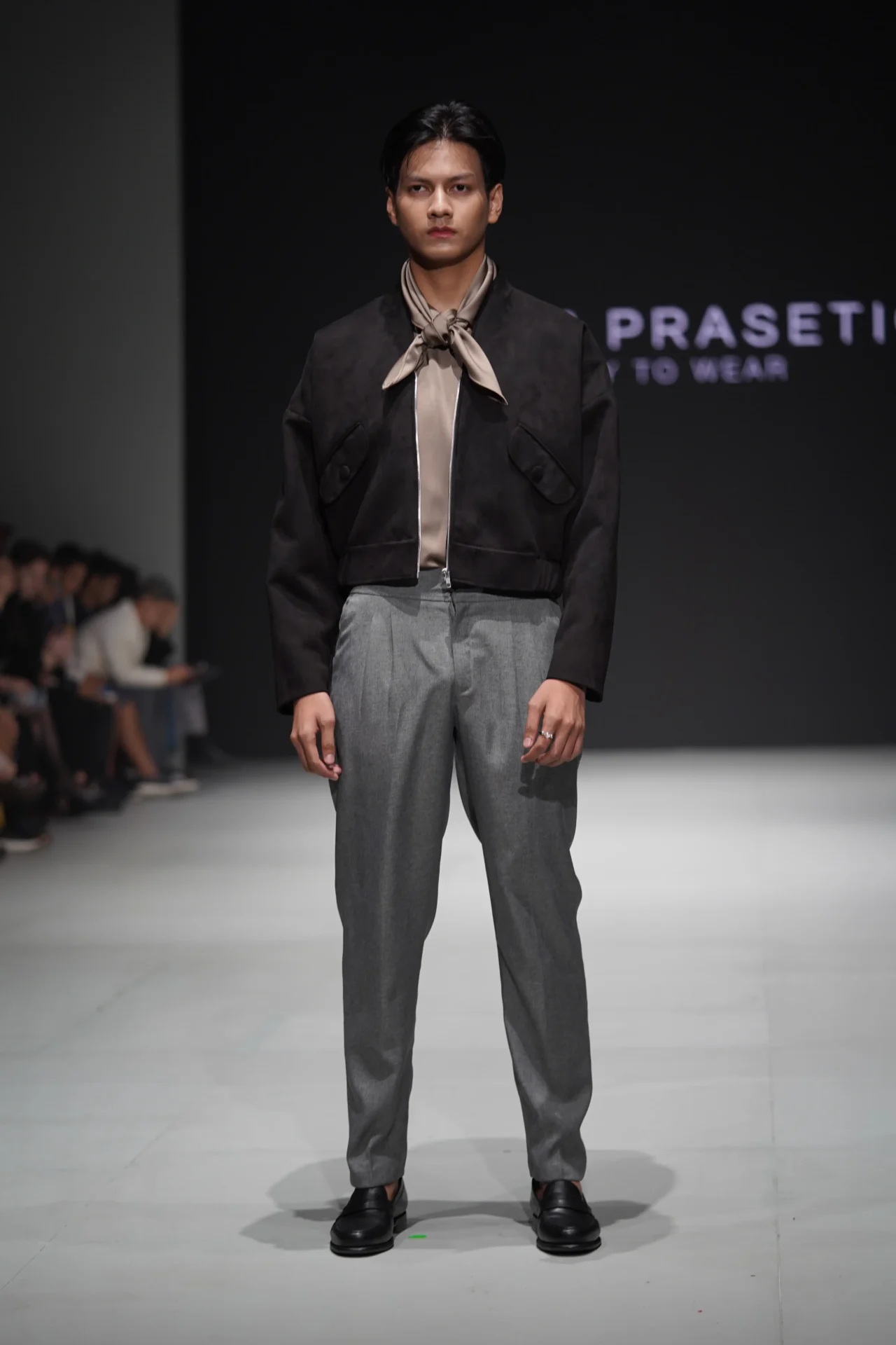 Sleek details meet smooth textures as they grace Prasetio’s designs in knits, semi-wool, suede, and glass fabrics. With a neutral and earthy color palette complementing his textile choices, his silhouettes own the runway, manifesting his vision of timeless creations that embody strength and elegance through versatile artistry.