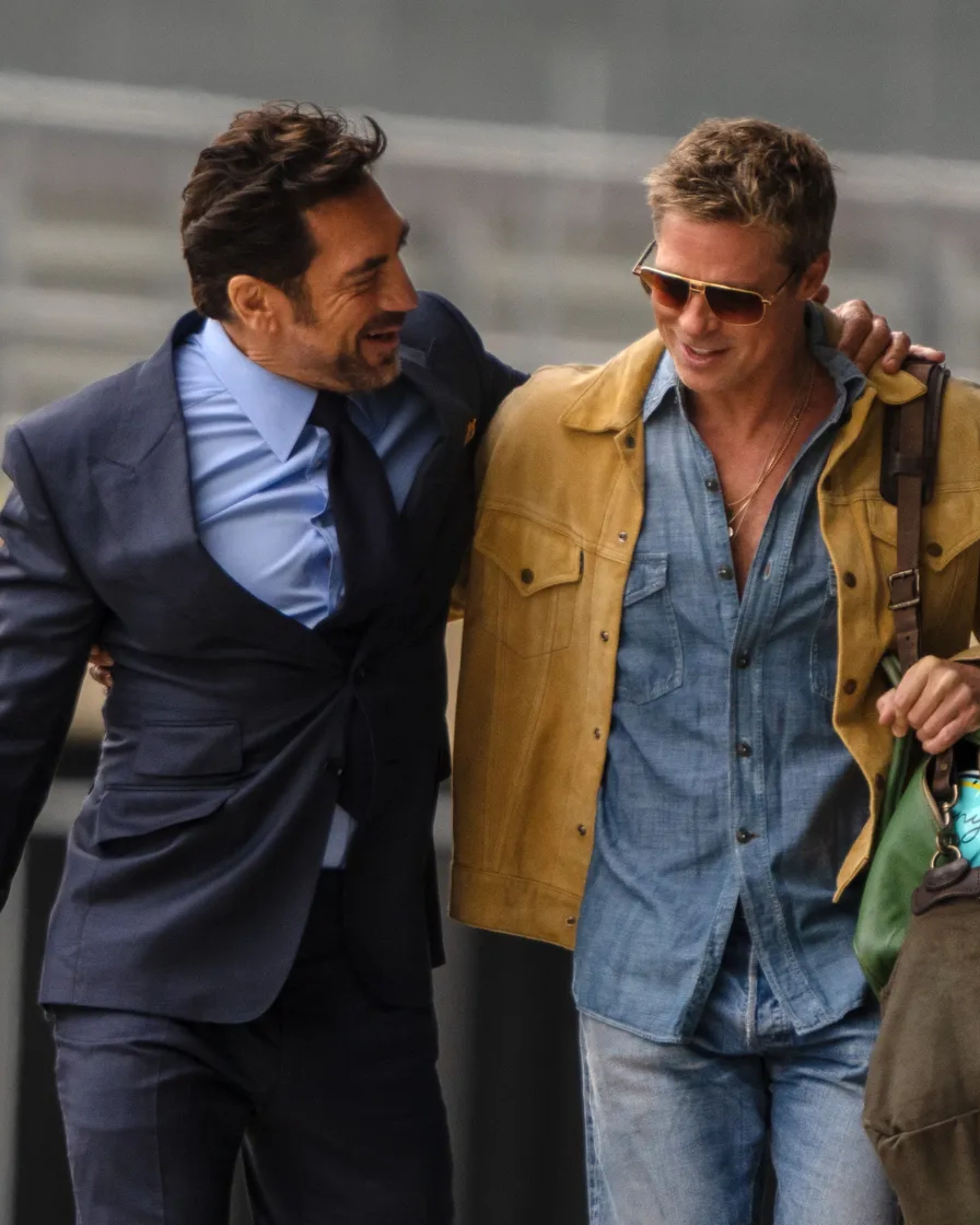 Most recently, F1 demonstrated how menswear influence often emerges off the main stage. While the film centers on racing, its most referenced looks came from the paddock. Sweaters layered under suede jackets, denim shirts worn-in, and aviator eyewear shaped a new model of sport-adjacent dressing.