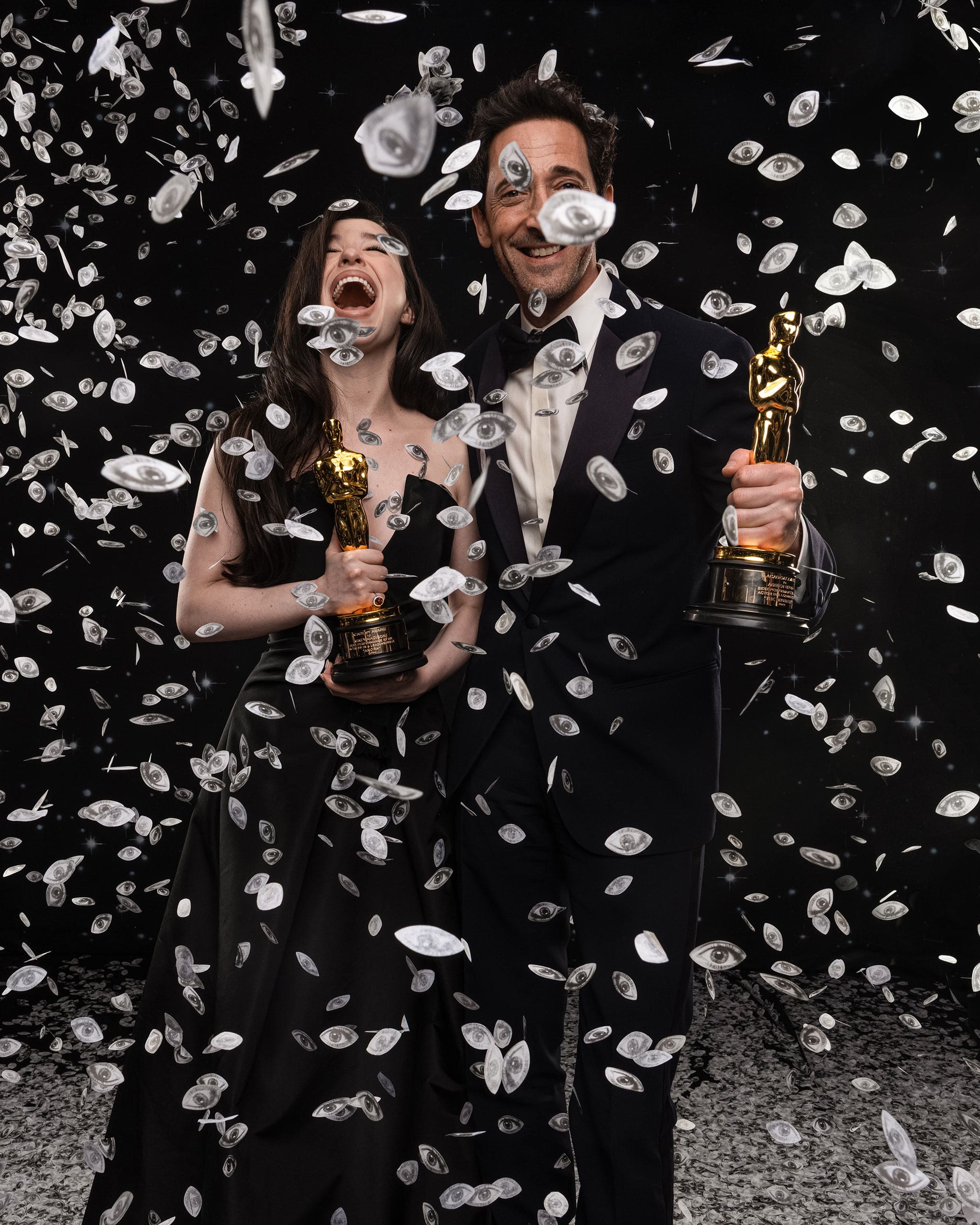 Hanya karya seniman Prancis JR, yang studio potret tahunannya adalah satu-satunya rekaman visual yang disetujui pada malam itu.
