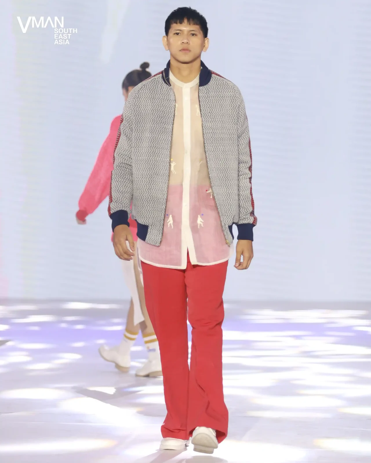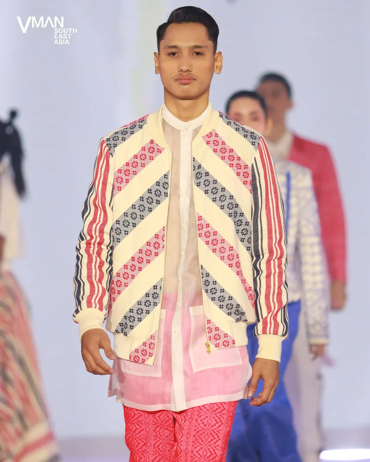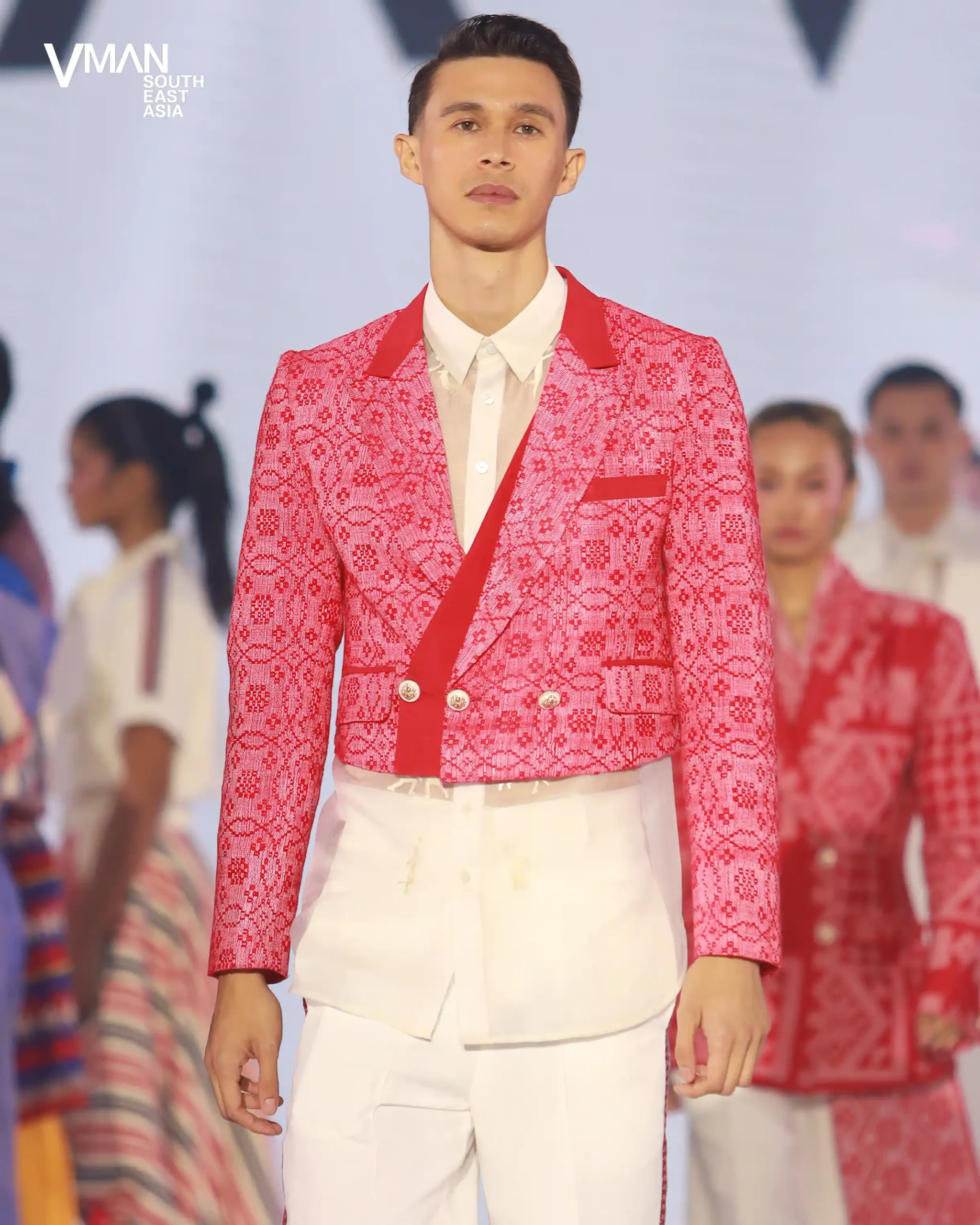Melalui jaket olahraga dengan panel tenun; blazer berpotongan dan tanpa lengan; barong sebagai kaus dalam, dijahit dengan detail yang terinspirasi dari bola voli; dan pola-pola yang semarak, perancang juara ini mendemonstrasikan bagaimana tekstil dan motif khas Filipina berpadu dengan kedinamisan pakaian olahraga dan ketepatan pakaian pria.