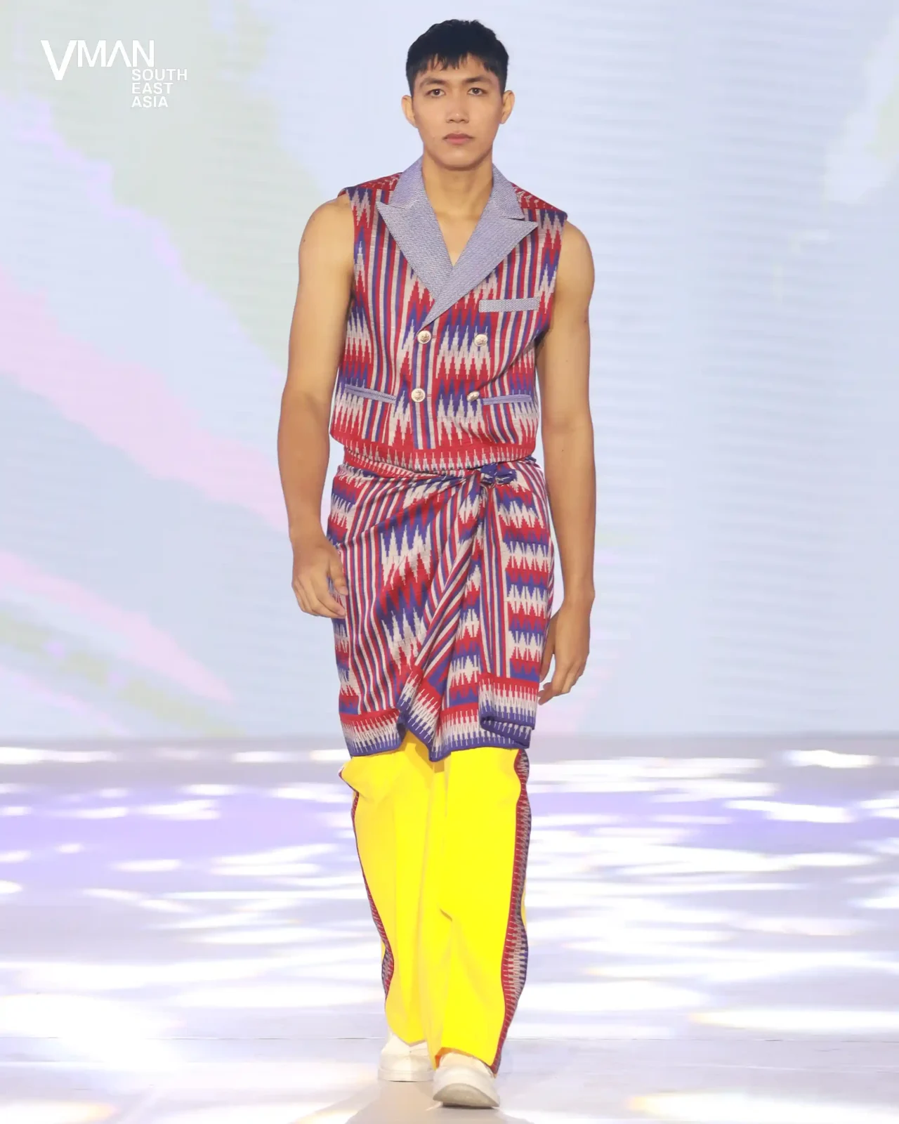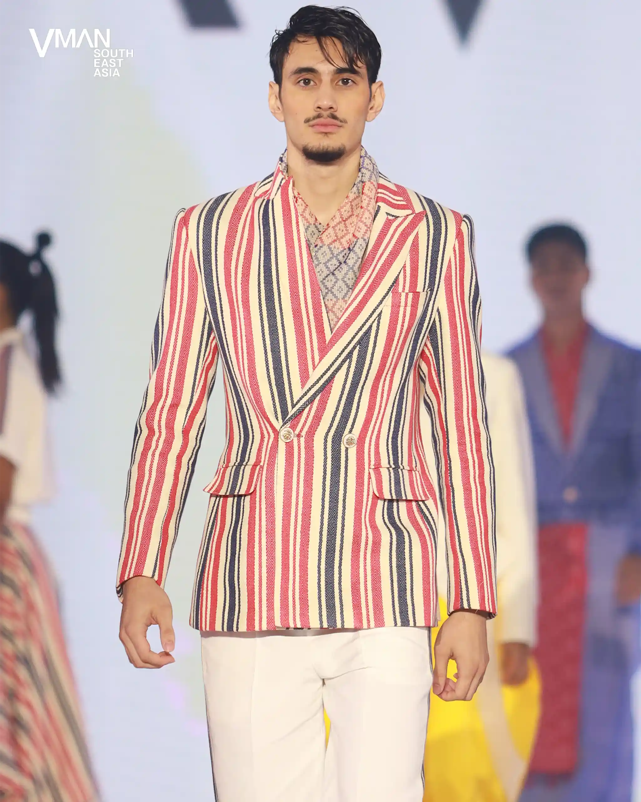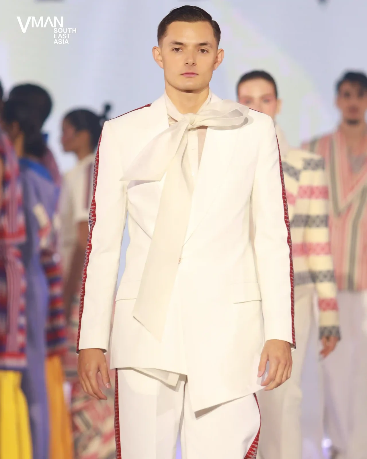Melalui jaket olahraga dengan panel tenun; blazer berpotongan dan tanpa lengan; barong sebagai kaus dalam, dijahit dengan detail yang terinspirasi dari bola voli; dan pola-pola yang semarak, perancang juara ini mendemonstrasikan bagaimana tekstil dan motif khas Filipina berpadu dengan kedinamisan pakaian olahraga dan ketepatan pakaian pria.