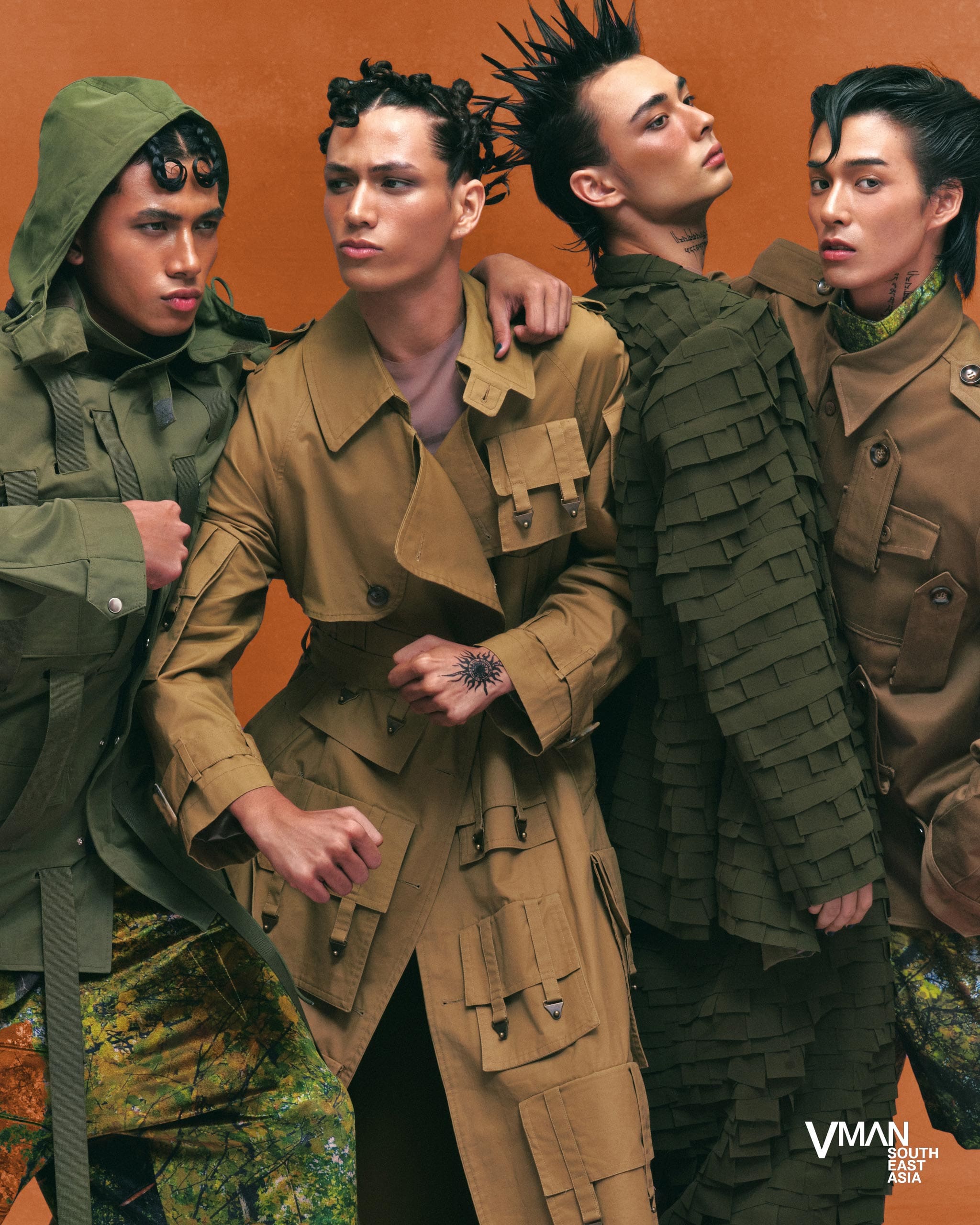 Perpaduan antara Timur dan Barat dalam rancangan Kim, menggabungkan pengaruh Vietnam dan Australia untuk menampilkan pakaian yang terinspirasi dari militer dengan detail utilitarian bernuansa tanah