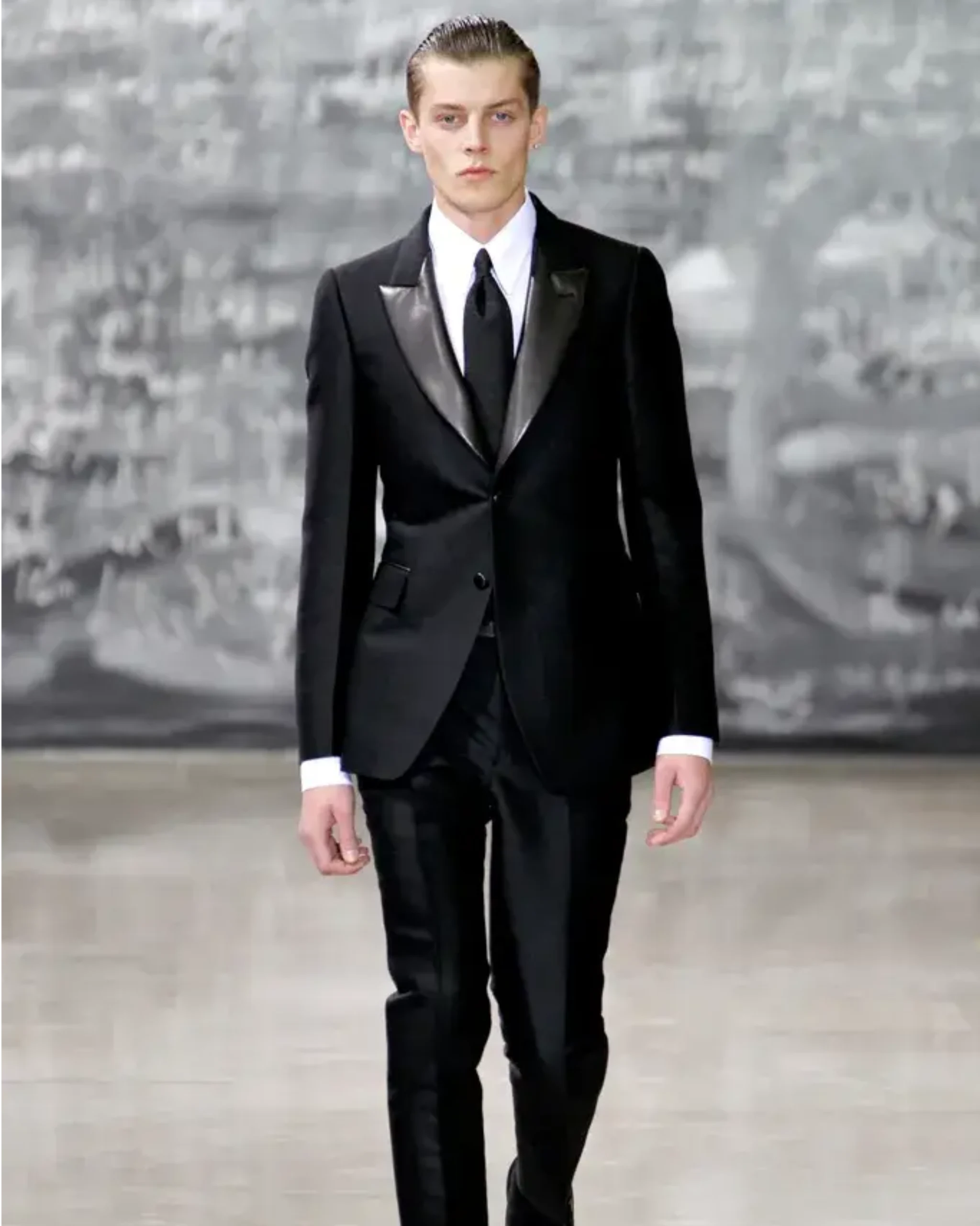 - Kini hadir potongan yang lebih ramping, kerah satin, dan dasi kupu-kupu hitam, yang menjadi penanda gaya hidup yang patut dicita-citakan: karpet merah, ketenaran layar perak, dan kemewahan secara keseluruhan.