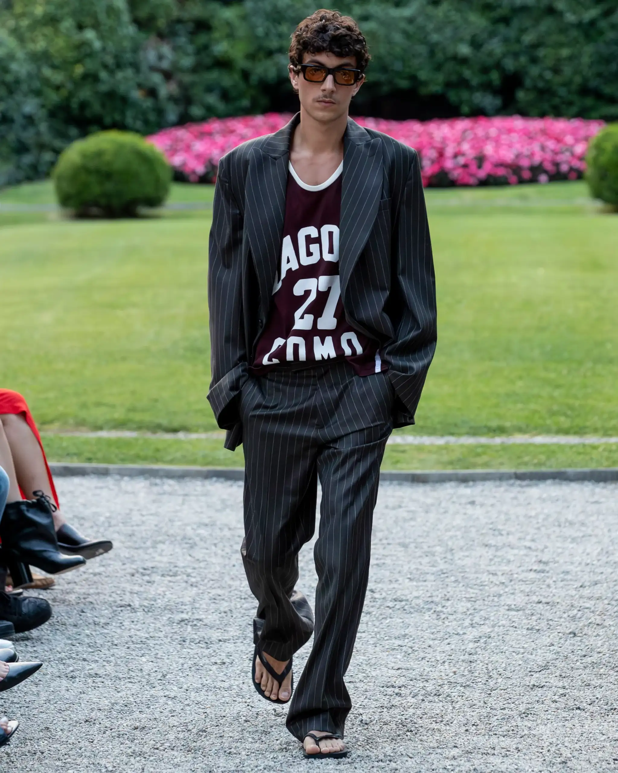 แน่นอนว่าความบ้าคลั่งนี้ต้องมีวิธีการ ในครั้งนี้ เป็นเรื่องของความแตกต่าง รองเท้าแตะไม่ได้ถูกใส่ไปชายหาด แต่ถูกสวมใส่คู่กับกางเกงขายาวและกางเกงยีนส์สีเนื้อ การจับคู่สิ่งที่ดูลำลองอย่างเข้มข้นกับสิ่งที่ตั้งใจทำเข้าด้วยกันนั้นดูสุดขั้ว เคล็ดลับในการทำให้มันออกมาดูสมดุลคือต้องคำนึงถึงรูปร่างที่ใหญ่โต เนื้อผ้าที่บางเบา และความพยายามที่ดูเหมือนไม่พยายามเลย กางเกงผ้าลินินผูกเชือกที่แทบจะไม่แตะพื้นเลย เสื้อยืดสีขาวคลาสสิกหรือเสื้อเชิ้ตแขนยาวทรงหลวม ให้รองเท้าแตะดูโดดเด่นกว่าใครๆ เหมือนกับการกระพริบตาที่ตัดกับคำบรรยาย