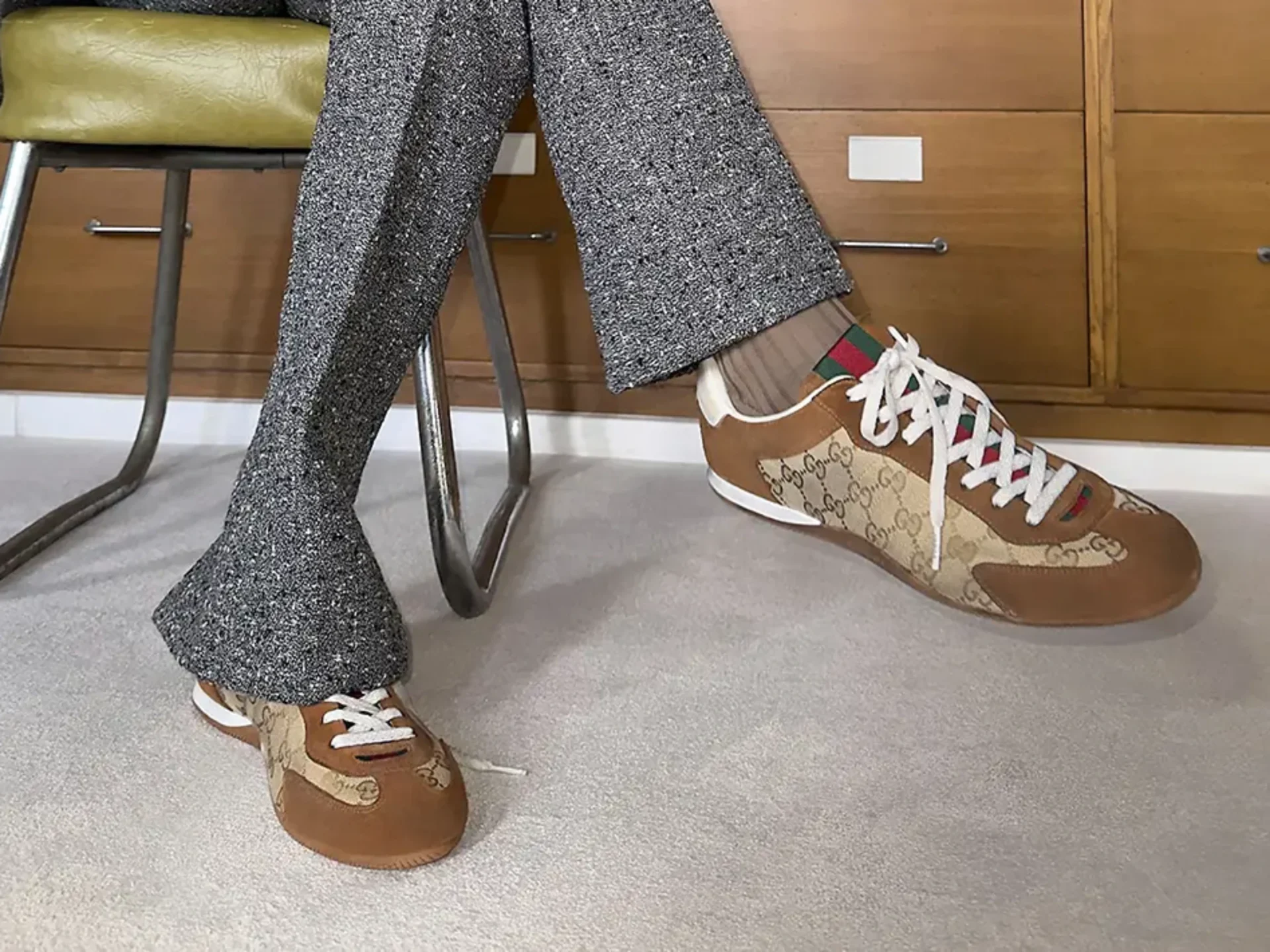 ชุดสูทนี้โดดเด่นด้วยเส้นโค้งที่อ่อนนุ่ม และยังเสริมด้วยเสน่ห์ของกระเป๋าหนังที่ประดับด้วยลวดลายเฉียงของ Dior ที่มีการปั๊มนูนในสัดส่วนที่ใหญ่กว่า